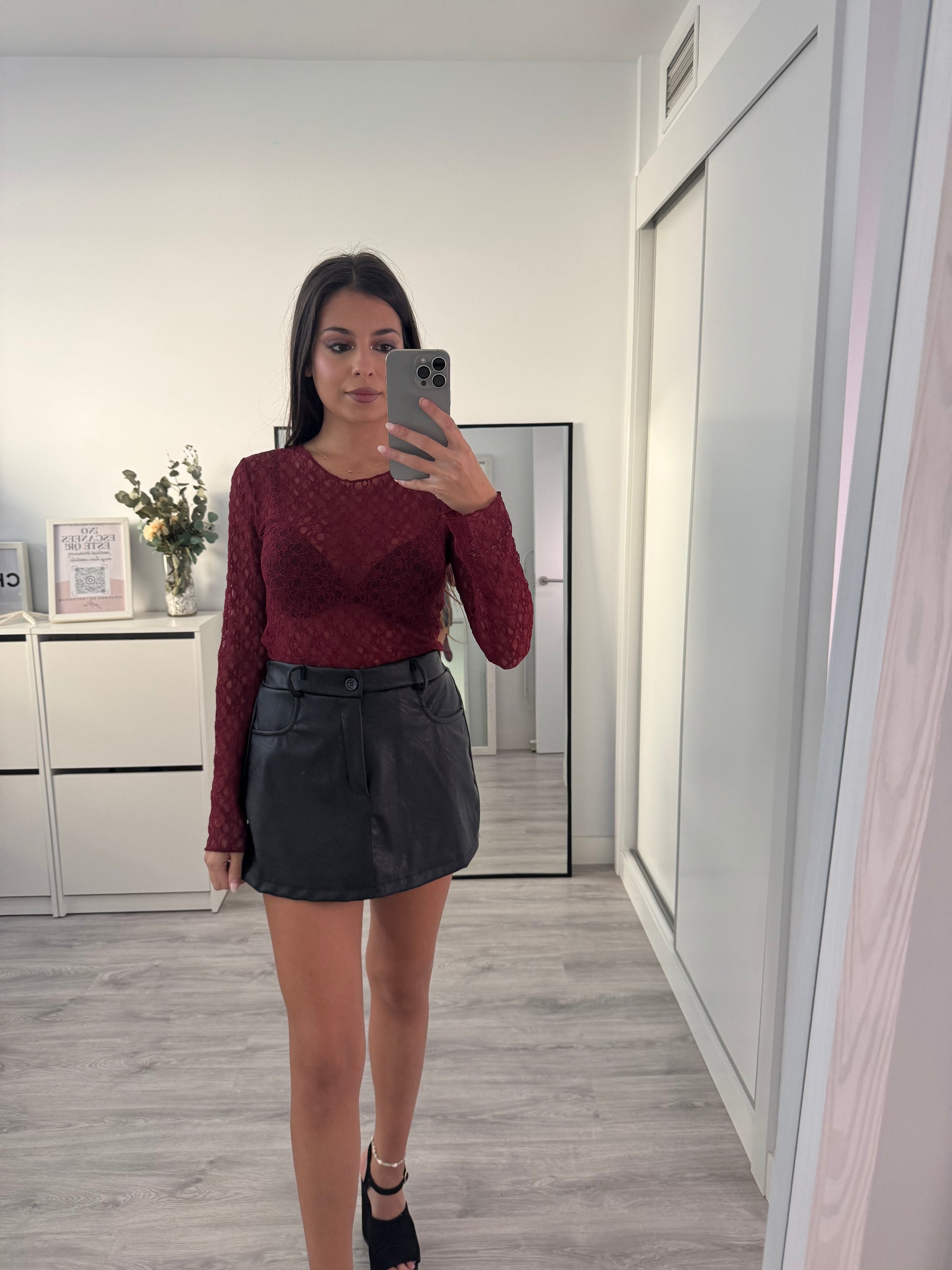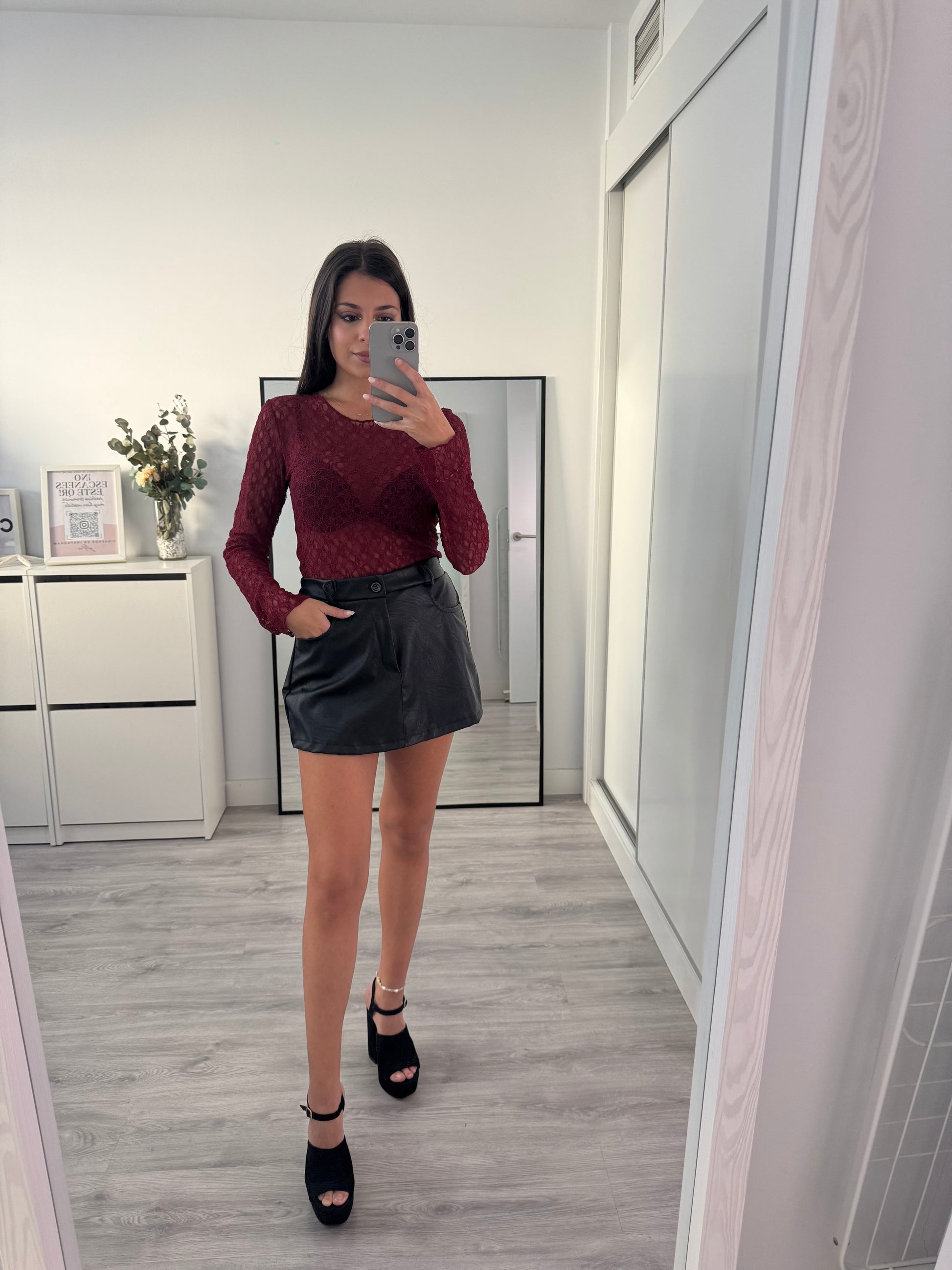 Diseñada con manga larga y un acabado semitransparente, esta camiseta ofrece un efecto sofisticado que destaca tanto de día como de noche. Su patrón floral y el ajuste favorecedor permiten combinarla fácilmente con faldas, pantalones o prendas de polipiel para crear looks modernos y equilibrados.